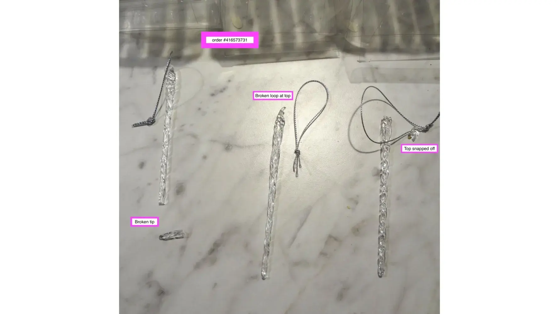 I bought sets of glass Christmas tree icicles. 3 individual icicles arrived broken. I spoke with a very nice, professional agent on the phone, and she put in my request for THREE replacement icicles.