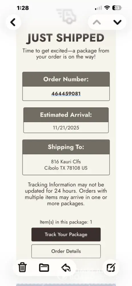 It looks like an item has been delayed. We're sorry for the inconvenience! You can continue to track your order status and estimated arrival date here in your My Account page.
