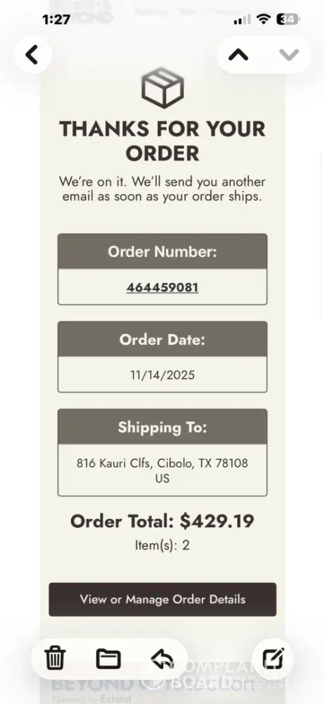 Order for a bed placed on January 1st, 2021 with estimated delivery between January 18-26th. Tracking said it would be delivered January 14th, stayed home from work with no deliver. Next update said del inert January 18th, still no deliver. Tracking was received and followed until January 18th when package was updated to delivered however it was delivered to tonawanda, ny. I called twice to question why the tracking was not updated and my shipment was not moving. Last call on Friday I was GUARANTEED â€multiple times that my package would be here on the 26th and told not to worry at all. Today is the 26th, another day off work. Still no delivery and no package. I called for the third time today and I was told my order is missing! And they had no idea why. They could submit a request for a replacement that would be processed in 7 days ?!?! I just waited 25 days for an order that isn’t even coming.A bedroom torn apart waiting for the replacement and 3 missed days work and she offers me (after I ask of course) $25?! Now I am to wait for a response from case update within 24 hours. However I see on here now that doesn’t happen. This customer service is absolutely unacceptable and disgraceful!