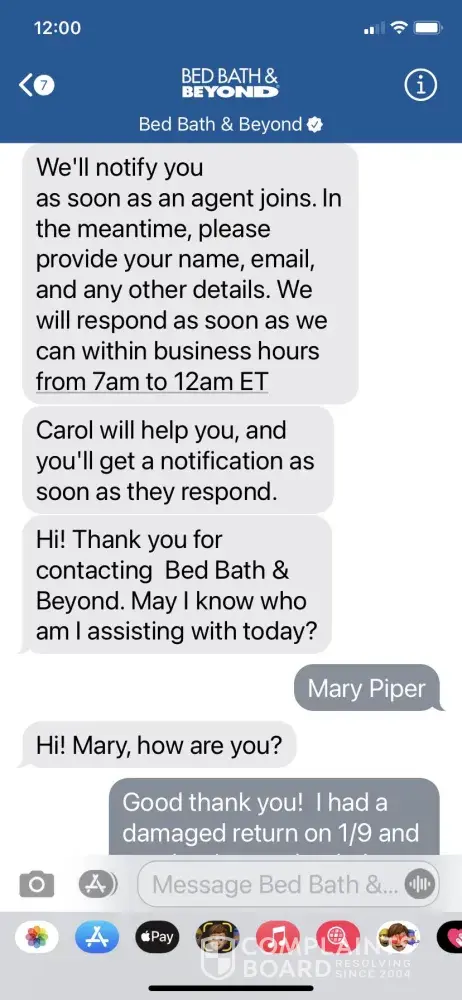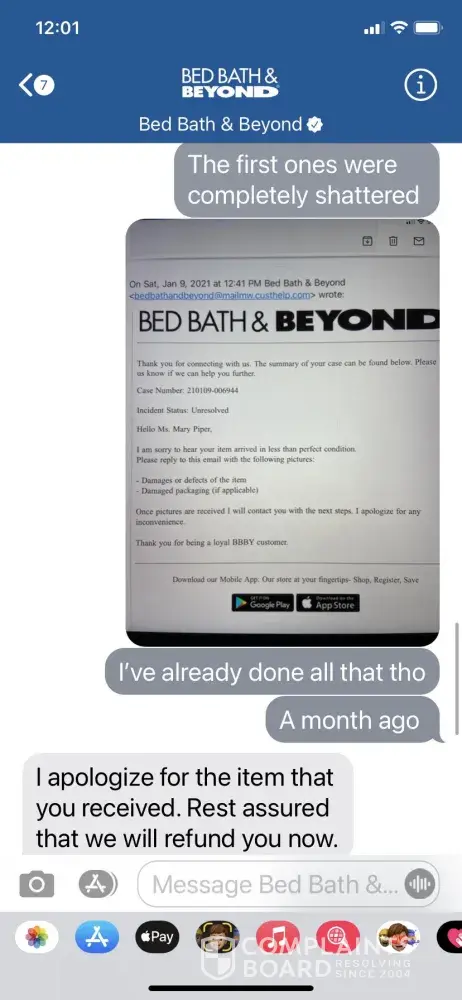 Return and refusal of BB&B to process refund CASE #[protected]