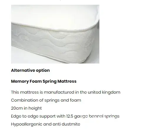 I would like to mention that if you have a flat please ask them on delivery policy. It was our first time ordering a bed from there. It was delivered outside our buildings and we were told to get the bed of the van with the matress because he will no deliver it further. When we asked why he replied in anger that he "works alone" and can not do it by himself. When we said that he needs to deliver the matress atleast to communal area, he chucked the matress and the bed outside our block and left while swearing and calling us names. I got in contact with company and they did not do anything about it, worst thing is was that they promised that the manager will call back. Some of our neighbours has helped to deliver it into our apartment but then we found out that the matress was too small. When we asked to get new matress they have stated that new one will be sent out however nothing arrived. I called back again and they completely forgot. When the matress arrived they placed it in communal area that time however told me that I need to bring the original matress down and did not even help me. I notified them that I had surgery after hernia and they completely did not care. Managed to swap it over with help of neighbours. This was the worst experience I have ever had with the company and I will never purchase anything from there again.