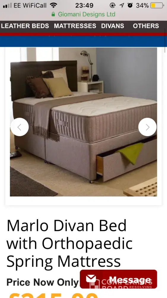 1) Waited in all day on my Saturday morning for the scheduled delivery, then at noon I got an email saying it's been cancelled for technical reasons, 2) It was delivered the next Saturday, and when assembling it's immediately apparent that this is very low quality even for the £250 I paid in my opinion, so already feeling like Ive been had. 3) Very Poor markings to no markings at all (No instructions) on where the Bolts go for the head board, ..you have to run your fingers over the Divan base fabric feeling for a grove underneath where you will then pierce the fabric to attach the head board. Same goes for 2 underneath claw clamps which are used to hold the 2 split Divan bases together, you have to really force these in and pierce the fabric base covering, ..it's messy 4) The Divan bases and head board & the fabric covering it just smells like a sawmill. 5) The Headboard struts aren't long enough to raise the headboard high enough for the mattress to slide 2 inches underneath it, ..so instead you are left with a mattress that overlaps at the end of the bed by 2 inches because the cushioning in the headboard pushes it down so. 6) The bed looks nothing like the photos, nor the mattress. The photos shows a twice the size headboard than the one they sent me, the mattress looks good on the photos, but a really cheapo looking one you get which was also Cream with grey edges instead of the pics which show a completely grey and different textured mattress. 7) My order was for a pocket sprung memory foam mattress, ..there definitely isn't anything 'memory foamy' about this mattress they sent. 8) My bedroom smells like a workshop saw mill now. **I contacted beds.co.uk by email initially, ..was told to pull the divan bed bases slightly apart in order to accommodate the overlaping mattress because of the headboard pushing it down and not being high enough (and yes they told me thats normal positioning for the headboard. **Wow talk about a stage show being run here ! ***they eventually advise a replacement headboard would be sent out, whilst none of my other concerns are attended to. --I reply saying I actually dont want the bed, ..and I chase them for the next 10 days via email to respond to this and I hear nothing (I want to stick to email because there is natural tracking then, ..but eventually I call them today). **The rep answers the phone and tells me the guy who deals with the email has been off ill with major family problems ? (I really didnt need to know that much detail, ... #FakeNews) He advised he will send out a new headboard with higher struts to accommodate the mattress. (But the bed base only has 2 single points to attach the struts onto, so raising the high will cause more flex and I can tell you now the quality isnt up to the job to support this). ... #HashJob #MakeItUpAsYougo #Scary Lastly, I now know where my throat and sinus infection keeps coming from which started two weeks ago, .. hmm ..Co-incidence perhaps, .. but strange how this bed giving off stronge chemical workshop sawdust particle odours arrived in my bedroom then the next day my health issues began - that's my opinion.. ... and now since dissembling it and putting everything back into the plastic wrapping it came in, .. Hmm #NoMoreThroatOrSinusIssues ...and that's my story. It's hard to track a health issue to a new pice of furniture, ..but I'd be interested to know if anyone reading this then remembers they happened to also become ill when their bed arrived ? .. Peace out folks, ... lesson learnt, .you get what you pay for (Or in this case, I feel I got alot less and conned in my OPINION). ..Im not dealing with them again, . and now Im pursuing my refund via my Paypal guarantee service which i used for the purchase.