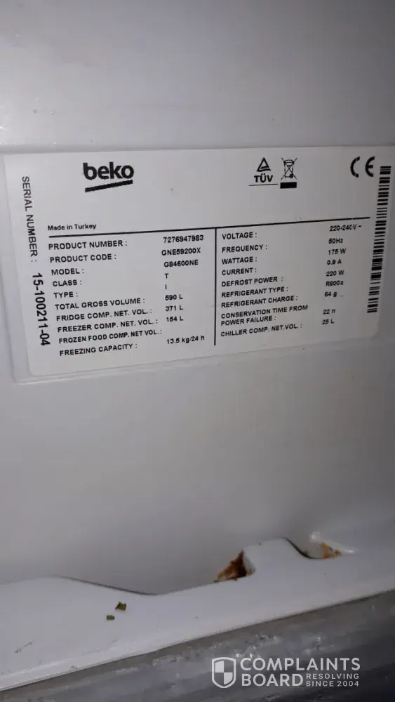 c. The Beko technician was incompetent. He said that the compressor had burned out. In reality, it runs, but is not strong enough to pump the coolant. He was unable to give us a reason why the compressor should have a problem and did not look for a reason.
