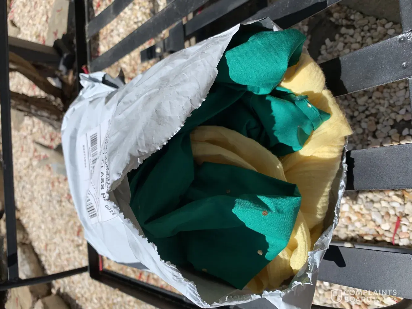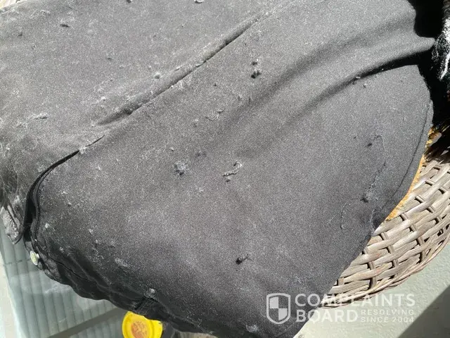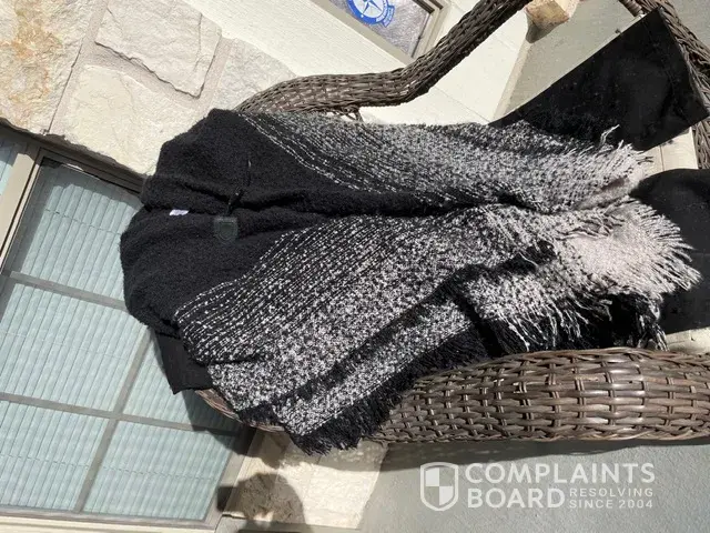 I purchased this as a Christmas gift. My Sister In Law wore it once and it fell apart as she was traveling. The photos are of the jacket and her slacks after one wear. I mailed this gift to her and don't want her to have to pay to ship it back to me as I already paid to ship it to her for Christmas. This was very embarrassing to give someone a gift that falls apart. It makes it seem like I made a cheap purchase. Please resolve this issue asap by providing the credit to my account. The receipt is below, account number is; [protected]/25 expiration. Marion Hunter. I appreciate your attention to this matter.