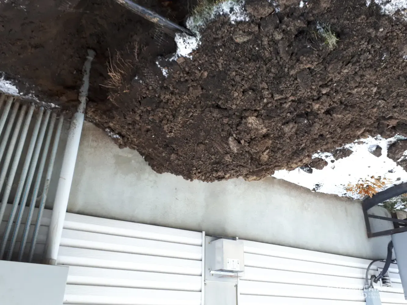 BELL is replacing some kind of cables on Trenholm Lane, Ottawa, ON. We have deep hole in the ground on our path way between houses and exposed house foundation of [removed]. The site seems to be abandoned. My concern is that house will get damaged due to exposure to low temperatures, snow and ice. Small rodens like to dig holes and get into the house as well.
