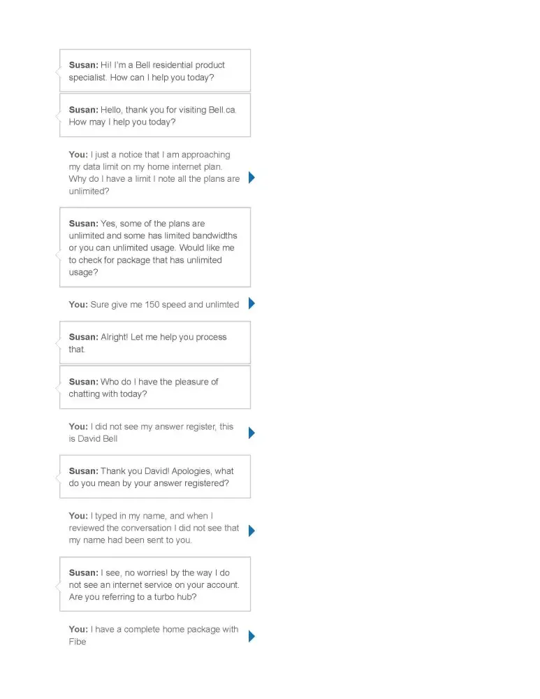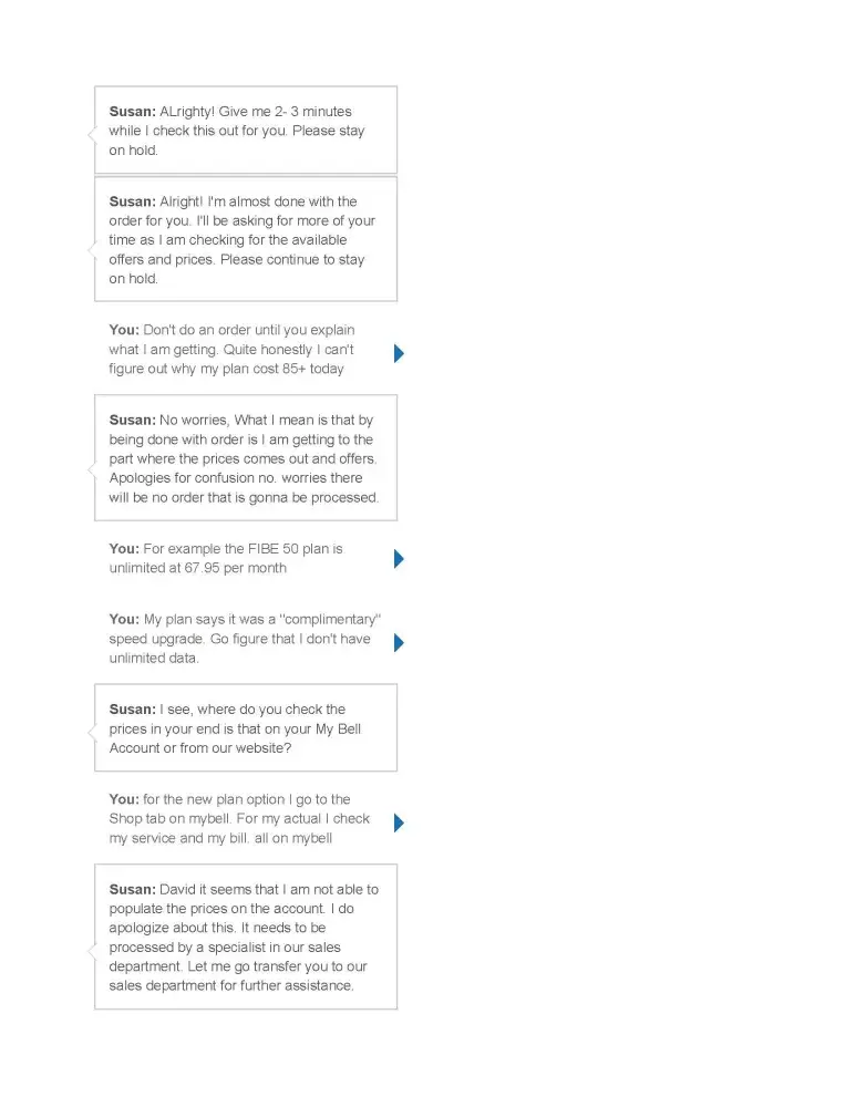 Well that was it for me and I made arrangements to switch to another company, who assured me that though they used BELL lines there would be no interruption as they have an arrangement with Bell and the switch over is almost always seamless.