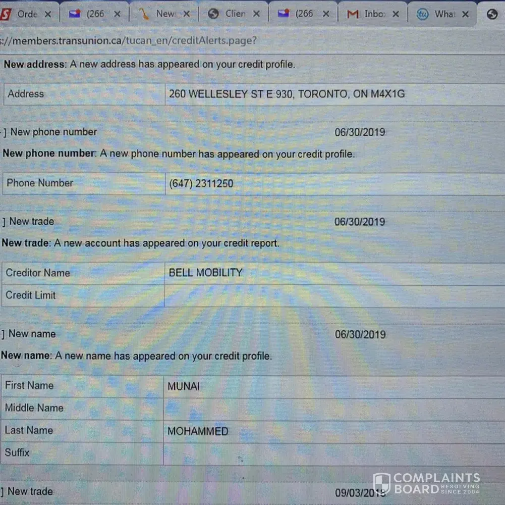 There was an account added to credit which is not mine. My name is not matching, i never used this number, address is not matching. Still they put it under my credit. I never had an account with bell. Due to this my credit score really went down. I am stressed now because of this. The name on the account is munai mohammed and no is [protected]. I tried calling bell to solve this but they are not ready to help. They keep telling someone will call me back. But i never received any call back from them. My credit score went down from 730- 620. How can they issue a connections without showing any piece of id. I have no idea what to do next. Just my last name is matching. So they put it on my credit. Even I never received any call for bill payment.