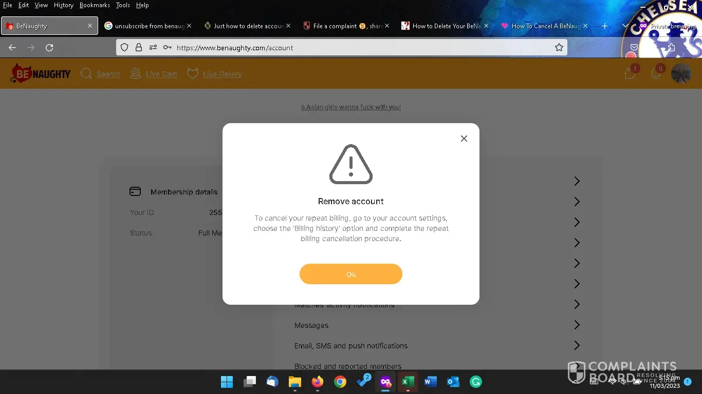 I signed on the dating site benaughty choosing the option fot three days use. But I saw that they are going to charge me repeatedly every month.Now that I saw, that most if not all the profiles are fake, I'd like to cancel it. I would like to stop the automatic payment of my bill for the dating site benaughty but I couldn't find out how to do it exactly. I've been following the steps to cancel the repeat billing and the last step says that I have to call a number. The phone number they are proposing to contact them is not working.