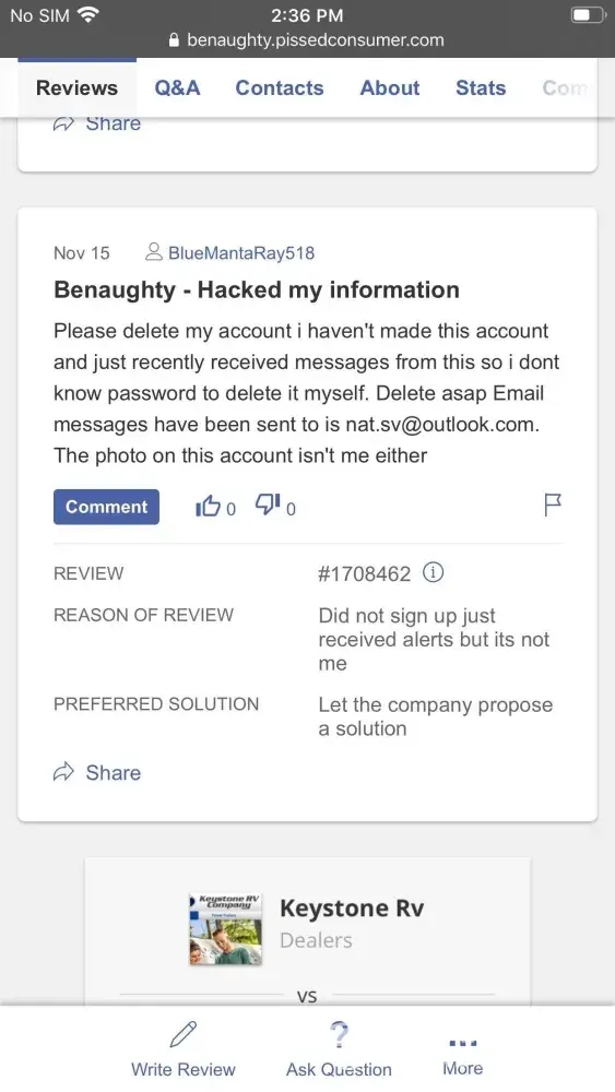Today my moms boyfriend found pictures of me on Benaughty.com. he sent screenshots to my mother and she forwarded them along to me. I am mortified. More embarrassed than I have ever been in my entire life. I did not create this profile with my pics. this in one of them I am naked. I took these pictures of myself a few years ago and I sent them to my boyfriend at the time. This relationship ended badly and apparently he created the profile or passed them around to people who did. I have tried to remove the pictures but I am unable to login because I didn't set the account up. I called north lock holdings and got put on hold for. Very long time after being asked for my login info I said I don't have login Info. When they finally came back on the line they wanted my debit or credit card number and when I told them I don't have one and don't understand why they need it I got hung up on. Please make them remove my pictures! They profile is named starzzzsparkle. This company needs to be shut down from what I have read they are nothing but a bunch of scammers using fake pics and charging people who no longer want to be charged.