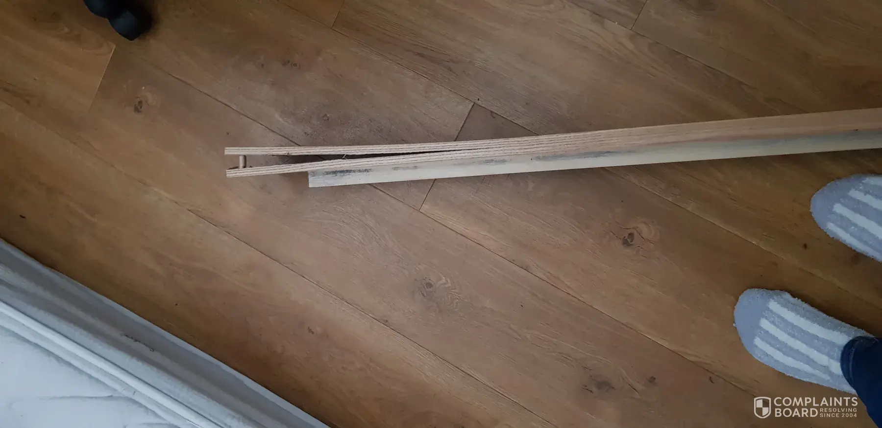 He comes back to complete the wardrobes and when he's finished instead of having my wardrobe fully assembled, I'm now left with a pile of wood on the floor!