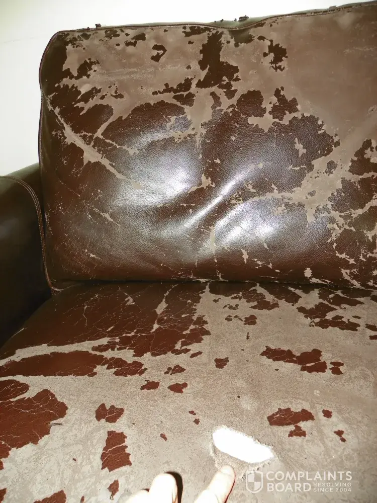 We've had one of their top grain leather couches for 10 years and it still looks and wears great. It had minor scratches and the seat cushions had lightened from wear. A simple application of leather cream brought it back to a much newer and richer look. What happened to your couch is awful and i don't blame you for documenting it. From personal experience, I can say their couches hold up well. I'm betting you had one in which the leather was bad from the get go. They sold it as-is because of that, but I guess this is an example of buyer beware when it comes to these kinds of items.