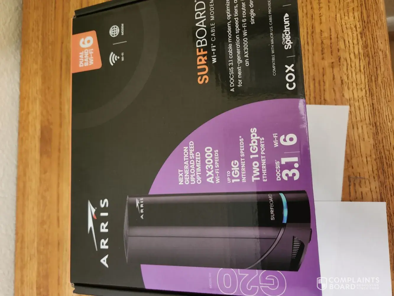 Out of all reported cases, 200 complaints (17%) have been marked as resolved, while 954 complaints (83%) remain unresolved. The most recent resolved complaint, Arris surfboard wi-fi cable modem, provides additional insight into how customer issues have been handled.