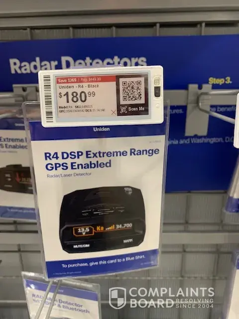 Desired outcome: I would like to purchase the Uniden R4 Black at the store posted price of $180.99. If they would ship the unit to the Best Buy Sawgrass location, I will buy it from them.