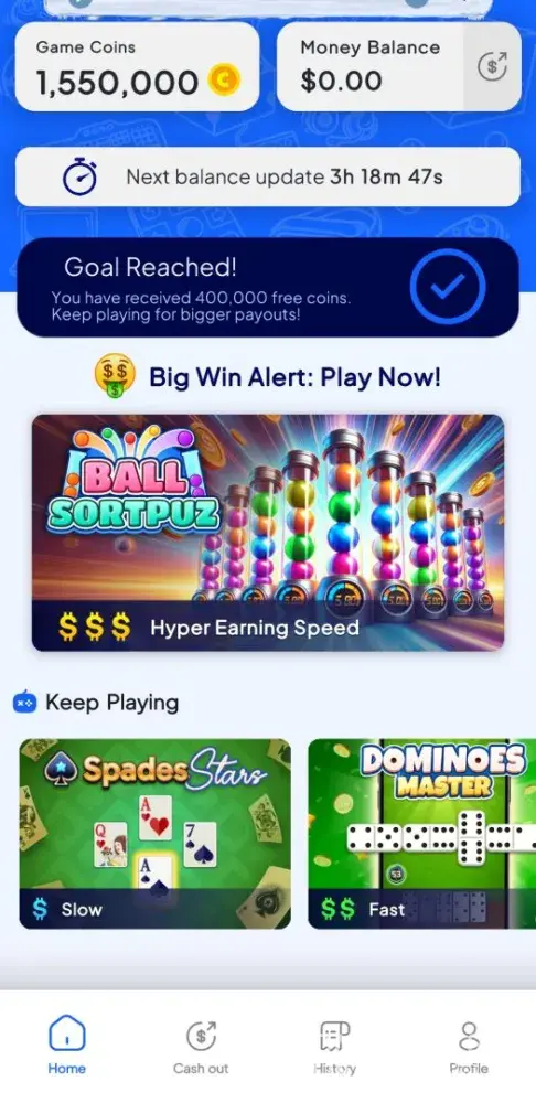 Literally only do this if you fully intend to play these games for fun. I'm just testing different apps to see who's who and what's what and this is by far the worst. The amount of money that they pay for four hours is a joke. I followed their instruction and switched games every 15 minutes and it just did not add up to anything. If you're going to play these games anyways, then it's not a bad deal because you'll just make a few cents while you do it but if you're trying to make a few bucks on the side, it'll take you couple days to add up to anything!