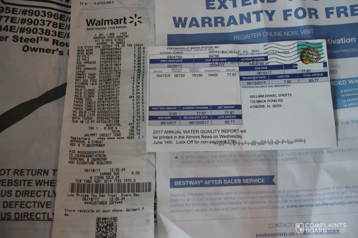 I purchased a Coleman/Bestway Power Steel Round Frame Pool Model #90389 on 5/18/17 @ local Walmart for $494 + tax, supplies, accessories. I prepped a 25' circumference area for 3 days tilling, leveling and spraying weed killer twice, then laid the tarp provided with the pool. The pool was set up, and as I started filling with water, wife and kids smoothed wrinkles. The pool has been used and maintained for less than a month, and as I was cleaning it on 6/14/17, I noticed a blade of grass protruding thru the lining of the pool about 1 1/2 ft from side of pool(pic will be included). I called the #[protected] listed on the pool paperwork, and the associate told me I needed to "drain" the pool, take a picture, and submit it with proof of purchase. The best part was I was also told that grass growing thru the liner is "NOT covered." Why would I drain the pool and do additional work if it's "not covered." The water bill was an additional $45 to fill it 3 weeks ago, not to mention the salt that has been applied to go with the salt pump which works with the pump that came with the pool.