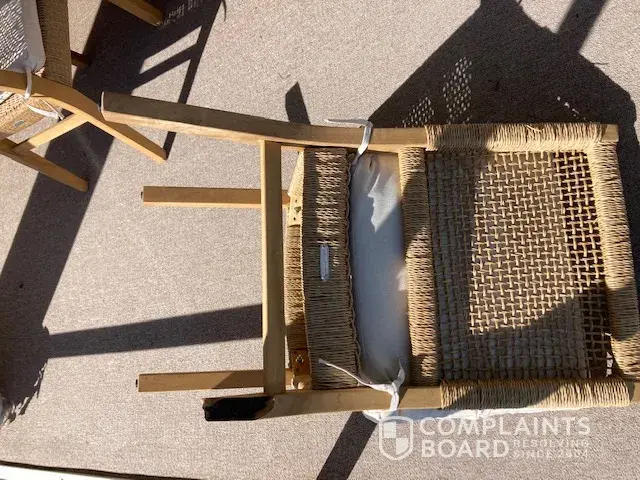 On January 25, 2023, while sitting on the chair at 6:05 pm the leg on the chair gave out and broke off.
