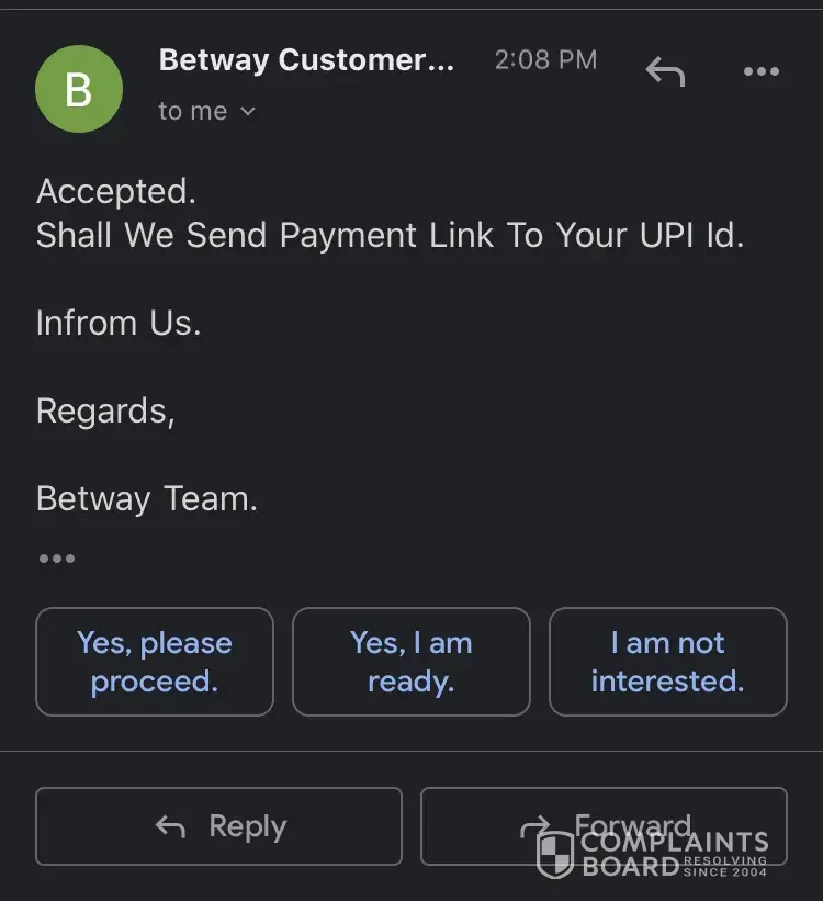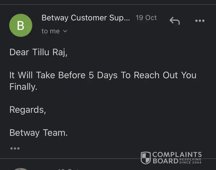 I had made the payment to the betway but my mistake was I made it from my wife's account and later I saw that if there is a name mismatch then amount will be refunded to the original payment account. I sent the screenshot, I sent the bank statement still no response. they keep on asking for the bank statement with the bank logo, full name mentioned. I keep sending and my 4000 Rs. is stuck. is there any way get rid of it? I am sure that I won't use betway for any purpose in the future once i get my money back.