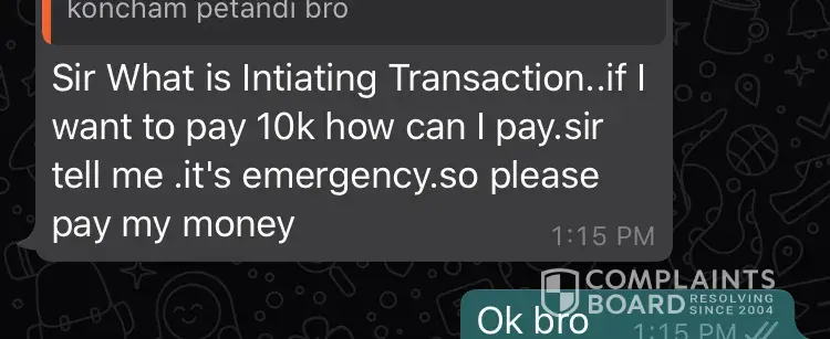 2) they customer service agent had made a fragility statement that 1000 is send to my account whereas i can see no such transaction has taken place.