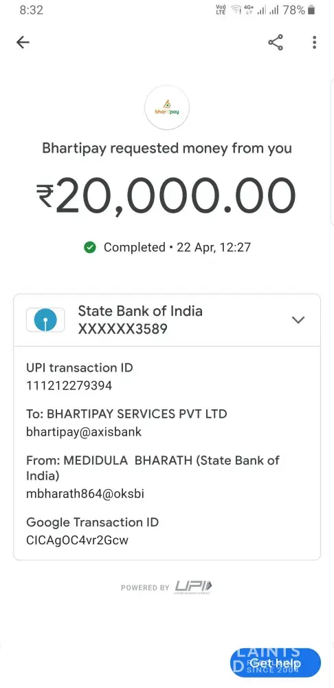 Desired outcome: 1. INR 10000.00 Txn ID T23040514544898687273072. INR 10000.00 Txn. ID: T2304051424530312830030Total INR 20000.00 Paid To DHARMESHBHAI JASHVANTBHAI KANO as you requested.