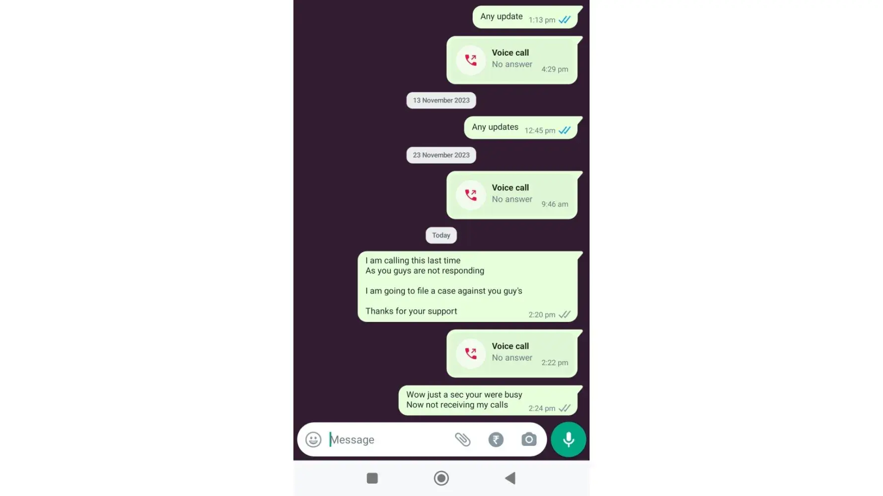 Along with that they are not responding not on call neither on WhatsApp.