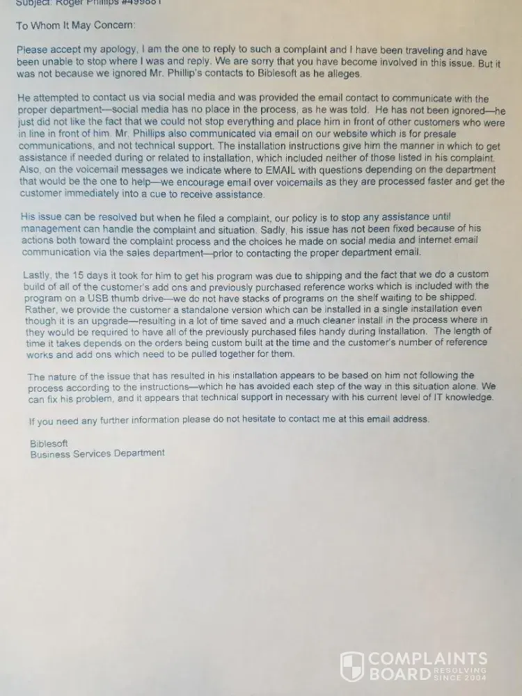 Biblesoft complaints: history and resolution overview