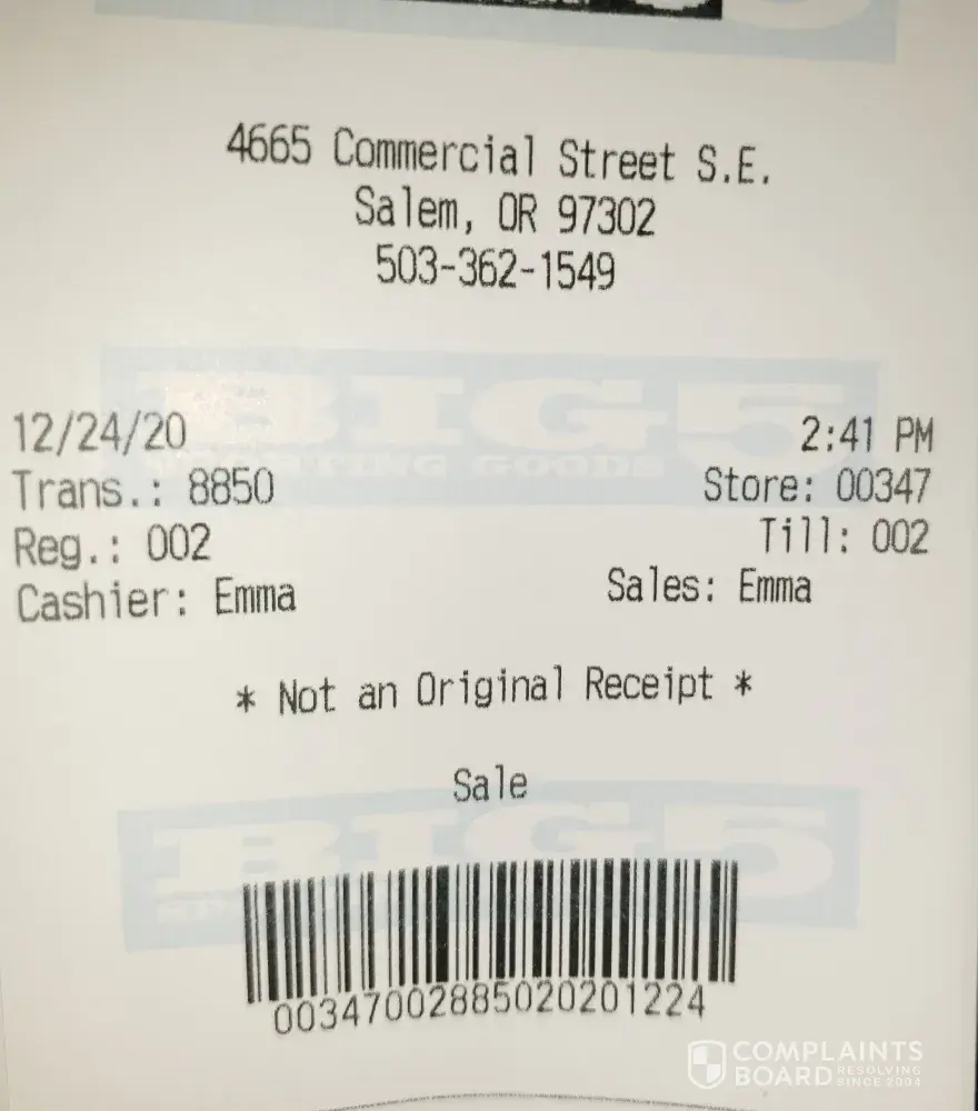 The Big 5 Sporting Goods sells defective merchandise in violation of "FTC’s Implied Warranty of Merchantability Laws". Section 2-315 of the FTC Uniform Commercial Code makes it abundantly clear that no company can sell defective products in the United States regardless of what argument or return policies they might present to get away with it.