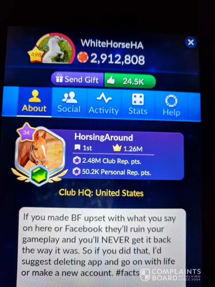 I used to love the jackpot magic slots. I love their games. Bit you just can't win anymore since Aristacrap bought them! Their customer service was the best when Churchill owned it. They actually made you feel appreciated and the actually read what you had to say! It sure as hell isn't now. Most of CS is all scripted and not even on the subject you contacted them about! They even have the nerve to tell you they didn't read your email. Then give you instructions to uninstall and reinstall. Churchill used to let us win and enjoy our purchases. They gave us perks when we spent money in Cashback bonuses popups giving us more coins to spend depending what you spent about 12-24 hrs later. My [censored] has spent thousands over the 2-3yrs I've been playing. NOT NOW. I am convinced they have an ALGORITHM that locks you down from winning when you purcase coins because it's impossible to win after a purchase and it can be up to a week before it lets go of you for a win if you don't purchase anymore coins. I confronted them on it of course the deny it saying that's the odds of the game. They are designed to give you a real casino like experience. I say [censored]. Odds are better at a real casino and you get reall vip perks. There are no perks left in the game anymore. You'd be lucky to get a random perk but they take those and the little win they might give you right back. Make a purchase it's gone in less than 5 minutes even on minimum bets! You can't even enjoy your purchase or the game.! I'm a club leader I can't even help out my club it's so bad!. It's embarrassing. I have a smaller profile I D0 NOT BUY COINS FOR. IT IS AT ABOUT 175M right now. As for this 0ne I don't think I have 50k right now. I spent over 100 this wkend trying to win for the club. I can't hit a win if it was hitting me! I keep buying in hopes the odds would be nice just once and help the club on challenges. I'm a [censored]. At least my mini profile helped the club out. Hell I opted out of the last 2 lawsuits maybe I won't the nest one.