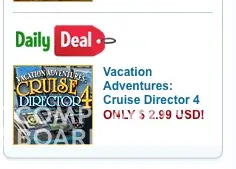 Now, just this morning, I saw the attached main page Daily Deal Ad for the Vacation Adventures: Cruise Director 4 game for $2.99 as well as the attached link-to-page ad, which shows the same thing.