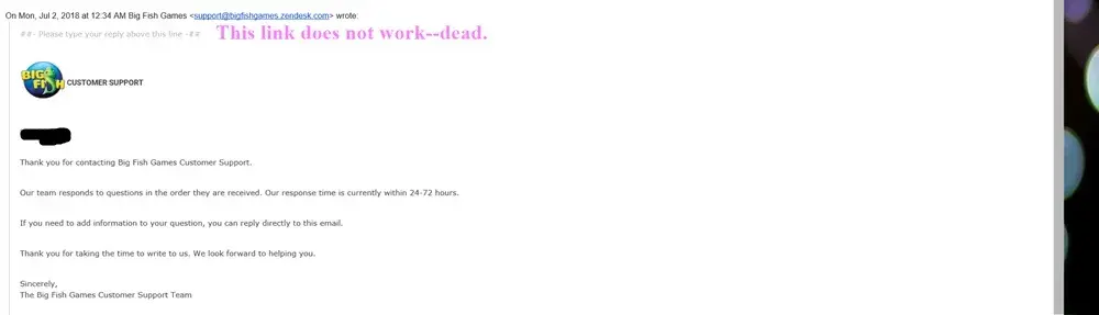 I use to play Big Fish games a lot. Then I did not play for a couple of years and decided to sign back up. Then I purchased a game. I was not able to download the game for 2 days, no matter what I did. So I created a ticket email to costumer service with the Dr. Felix results attached. I listed everything I had already done. I got the automated response email. I did everything they told me. I gave them my response and asked them, is this even getting to a real person? Nothing. So I called the costumer service number. I did not get through to a real person. I called corporate and I got a lady who said very condescendingly, I can not help you. I said I am not asking you to help me. I am asking you to put me through to someone who can. She said, I am not putting you through to anyone. It all gets handled through email and they have 72 hours to respond. Then put me into voice mail. They did not have any problem taking my money quickly. It is very disappointing to see that they have gone to just taking peoples money. Not supporting their product or the costumers. It is obvious to me that they only care about the money and are ripping people off daily. Do not do business with these rip off artists. Check them out first. Their are a lot of unhappy costumers and they do not care about anything but the money. I am still waiting to hear from costumer service 4 days later. I doubt I ever will. How can they have a good BBB rating when the BBB website has a bunch of complaints against them?! How much is BBB getting paid for that?!