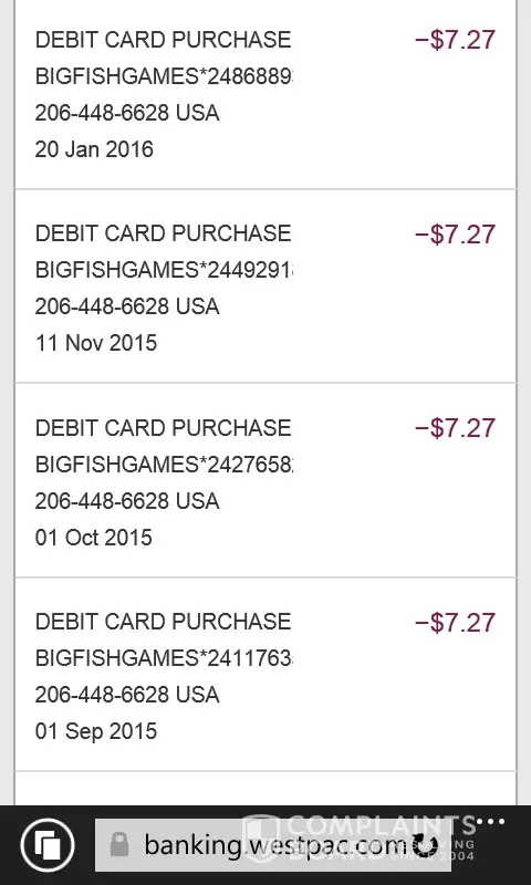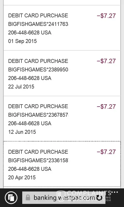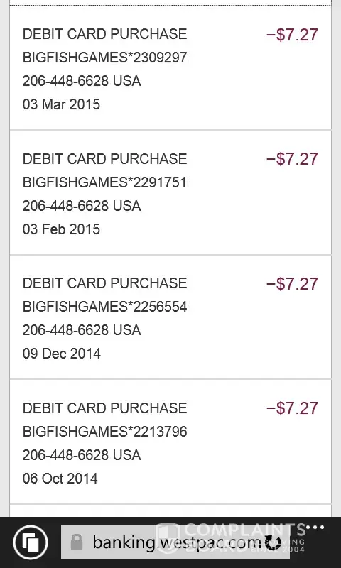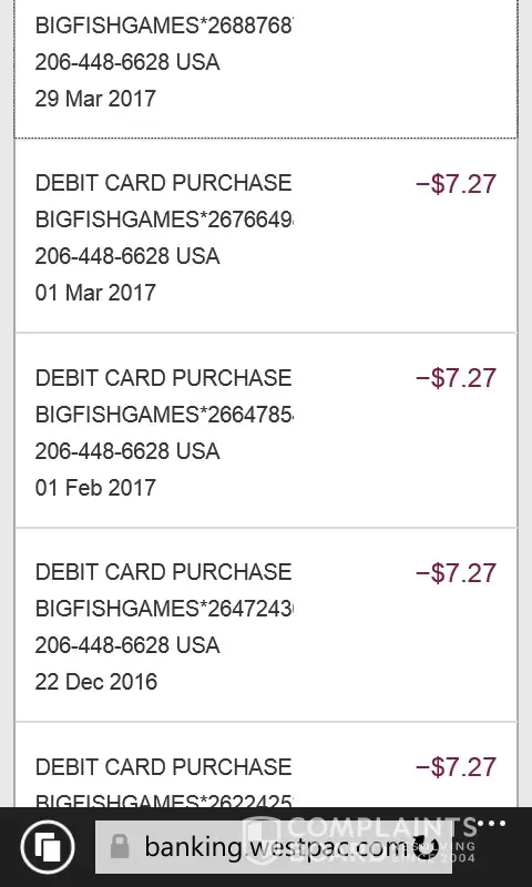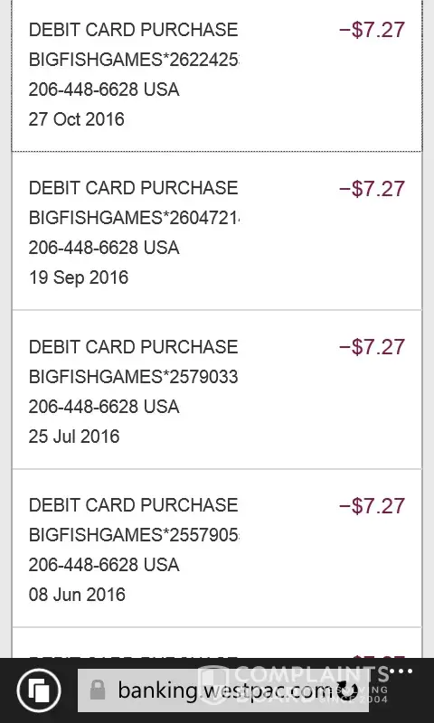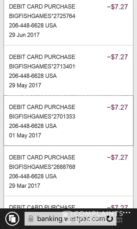 Every transaction is $7.27 AUD and there are payments dating back to 2014.