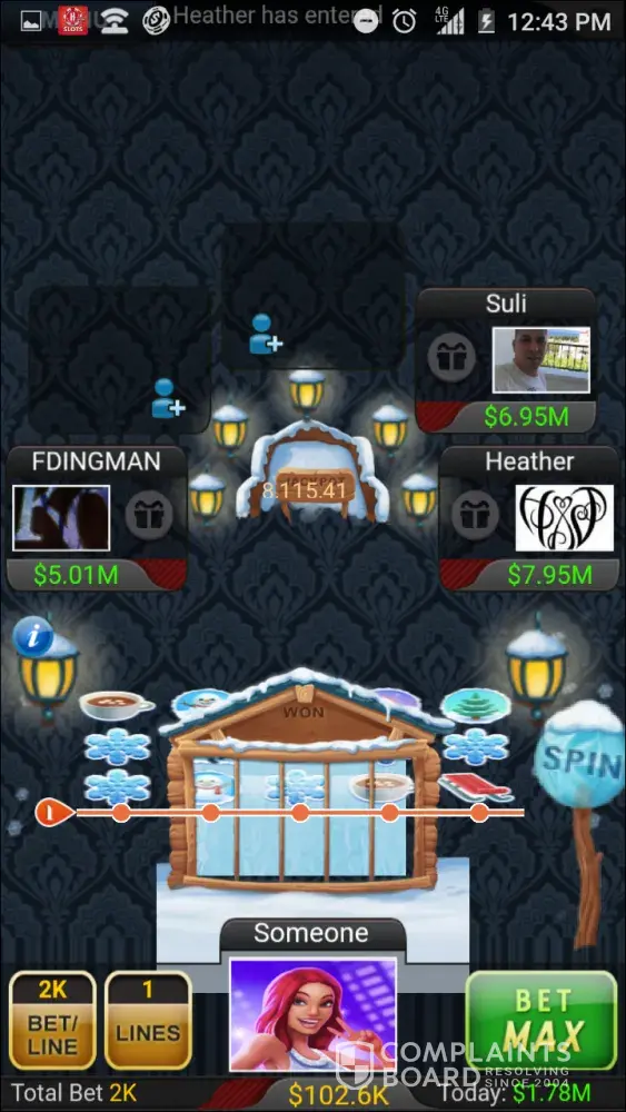 I have two complaints, I emailed and sumbittef a complaint about mad mouse and I did not receive the pot money or the 5 scatter I put in. My second complaint is I won a jackpot yesterday 7/13 and had 243 million. I did spend some and had over 200 million when I went to bed. I woke up with 2.5 million. I feel sick like bigfish took my chips. I bought several times this month and I would like all of my chips back, the jp winnings and my mad mouse. I will attach all the pictures. Please get back with me asap.