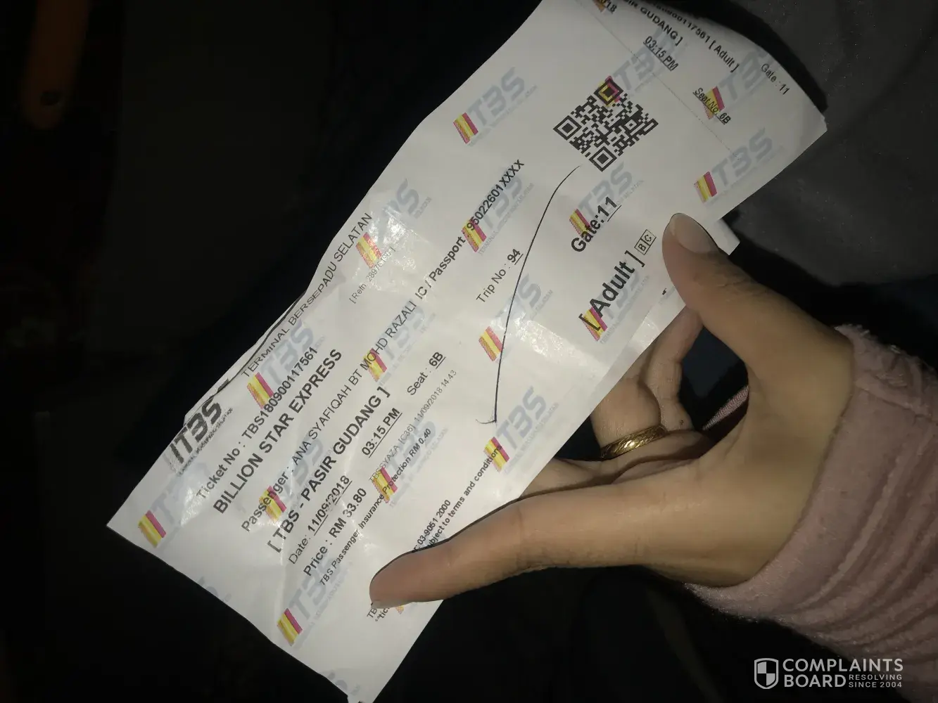 I would like to complaint about Star Billion Express bus bound for Singapore. Im now still riding on the bus, 25th November 2018 5pm bus from Terminal Bersepadu Selatan (TBS) station for Singapore.