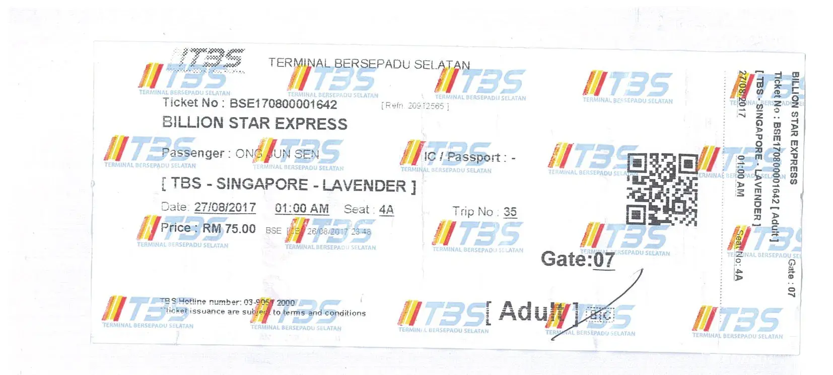 Bought a ticket for 3rd september 2017 from TBS. Depart at 1530hr to singapore - beach road. Waited until 1700 and Bus did not turn up. Presumabky due to jam for haji. Instead another bus came (the bus was one of the perak BOS taurus team bus) to pick us up.