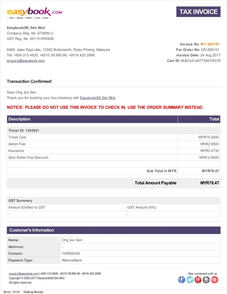 I hope there are improvement for the bus company and the Easybook website :