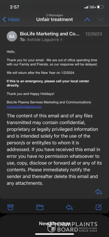 Read full complaintAbout BioLife Plasma Services