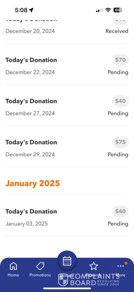 Read full complaintAmount of donation that I was expecting!