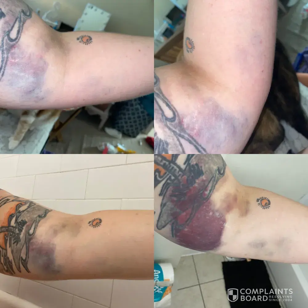 I went as a first time donor to the Richmond, Va location on Wednesday, September 8th. The nurse Gregg is the one who was helping me. At a certain point I had to get him to switch arms because I felt a lot of pressure and it was getting uncomfortable. For the next 48 hours after that happened I could not move my arm it hurt so bad. And by the end of the 48 hours it started to bruise. I'm not sure if they blew a vein or gave me a hematoma but I can't go out in public with me arm looking the way it does. I went back in on the 12th to talk to the nurse and the manager, literally the nurse said "you can't donate today, I'm sorry that happened to you" then she sent me on my way and that was it. Attached are the different stages of the bruising with the last picture being what it currently looks like