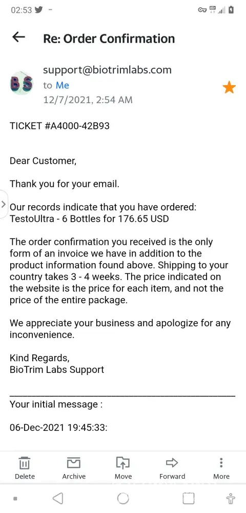 Subject: Re: FW: Shipment Update - TestoUltra (#0DD00-7FBDA)