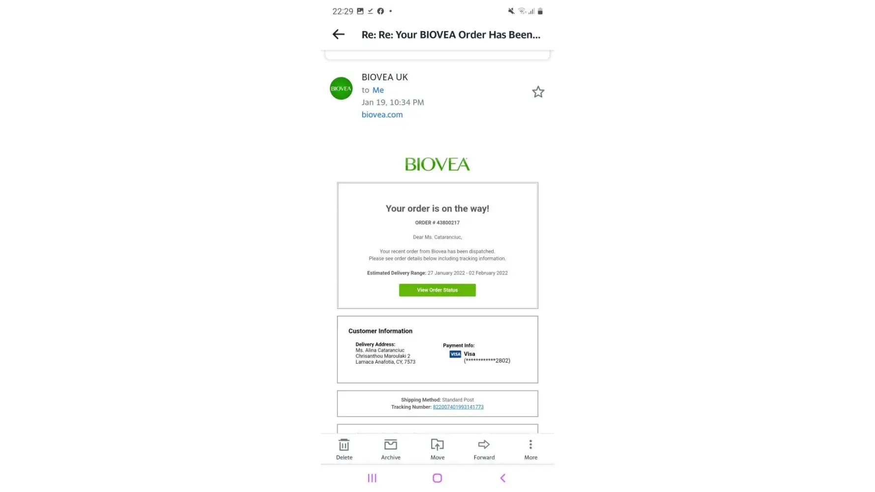 I made an order with Biovia, on 19 January 2022, and still haven't received it!