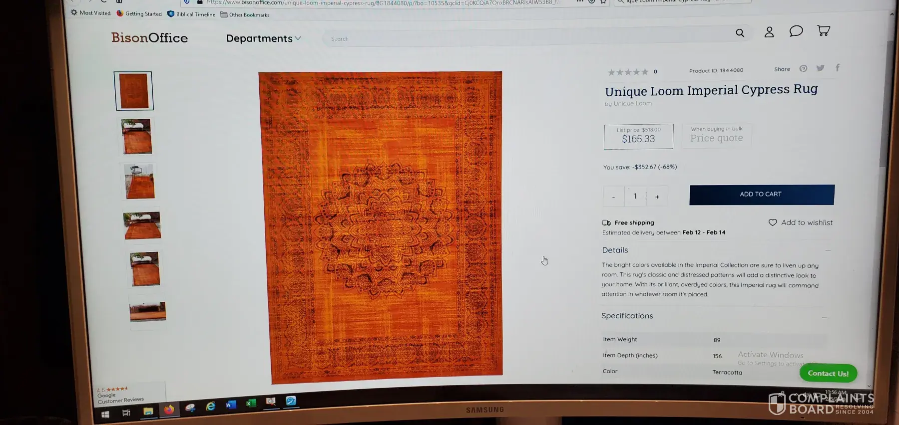 I purchased a rug from Bison Office, and they sent an entirely different rug than what was ordered. I contacted them and they agreed to send a replacement rug that was correct. The replacement was awful in appearance and not at all like the one pictured on their website. I emailed them three times to get a second replacement or a refund but did not hear back from them. I contacted PayPal to file a complaint and Bison Office replied, stating that they responded to my emails, even stating that they sent a return shipping label. I received a voicemail from them a couple of days later but when I called the number provided, I was prompted to enter the star symbol and an extension or person's name. However, each time I tried to do so the phone disconnected, and this matter is still not resolved. I am posting this message to make others aware so they can avoid the same problem I'm having with Bison Office.