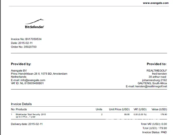 In the meantime, I opened a claim with Paypal because I sensed getting my money back from Bitdefender through Avangate ( their servicing company and a company I had never heard of until all of this happened) was going to be difficult at best.