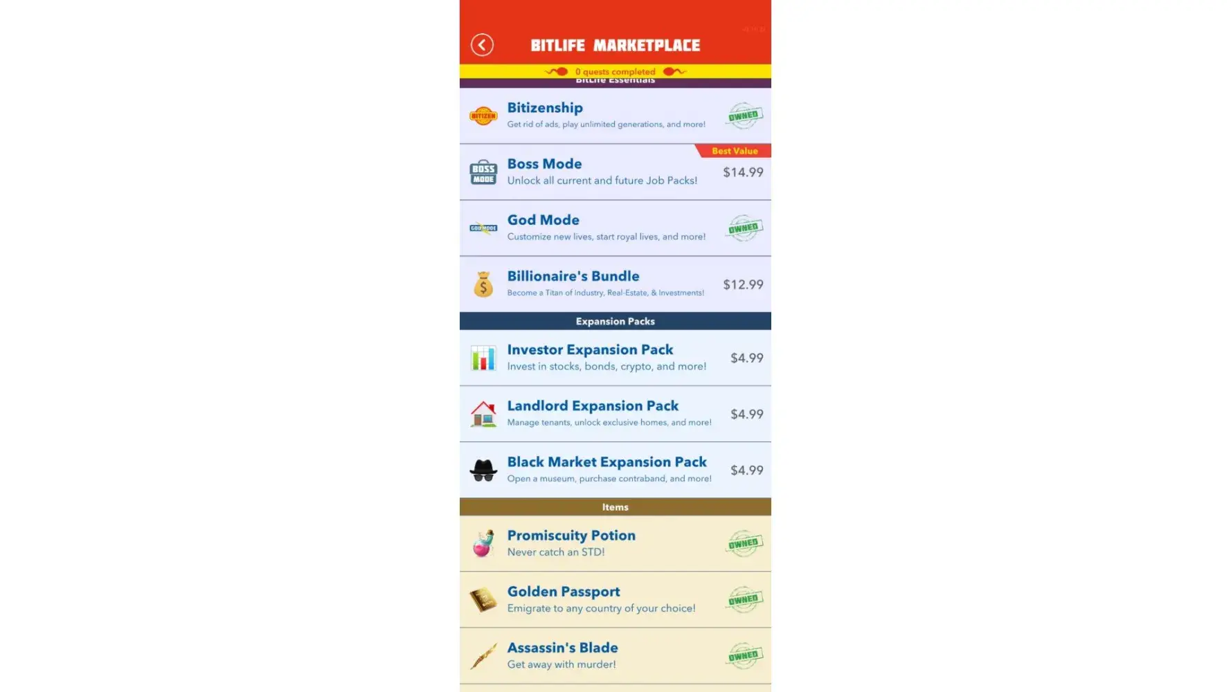 Also, there’s this weird bug where sometimes when I get out of the game for a while and then play again later, the life I’ve been working on is gone. Not dead, but completely wiped off the face of the earth. If you can fix this problem, BitLife would be better for me. Thank you!