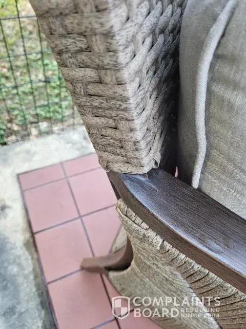 The items arrived on Wednesday 9/7. I set it up and noticed that by 9/8, the frame of the sofa has already started to warp. It is outdoor furniture and I expected that it would be able to withstand the elements for a long period of time. Did not expect it to warp after only one day.