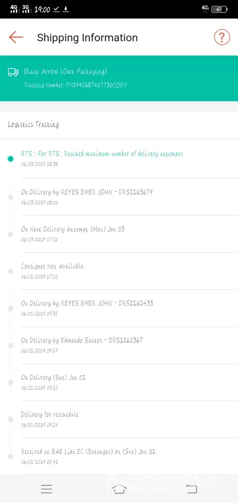 Black arrow is such a crap. I TRIED not to choose this courier because I had a horrible experience with them past days pero yun lang available kaya ano magagawa ko?! Get your service out of Shoppee. No delivery man are delivering the items! That's the problem. Walang messages na galing man lang sa kanila. And then makikita mo sa status 'consignee unknown/unavailable' seriously?! Pangalawang beses na to ah. Hello? Andaming tao sa bahay Ulol! Tapos I tried to contact their office here but crap! Its just plain stupidity!