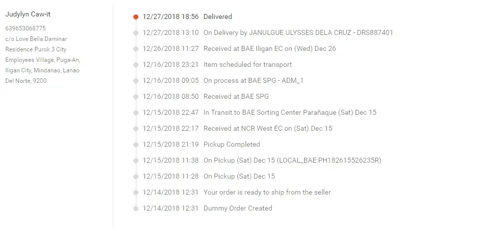 Ordered last Jan 13, items were shipped the next day. It reached BAE Batinio EC on Jan 17. Until now hindi pa rin nakarating yung parcel ko. 10 days na nakahold yung parcel ko doon. Ano bang balak nila sa parcel ko at hindi makarating rating sa amin dito sa San Pedro? Ang dami na namin nagrereklamo sa BAE Batinio EC office niyo na yan. Hindi pa rin magawan ng paraan!