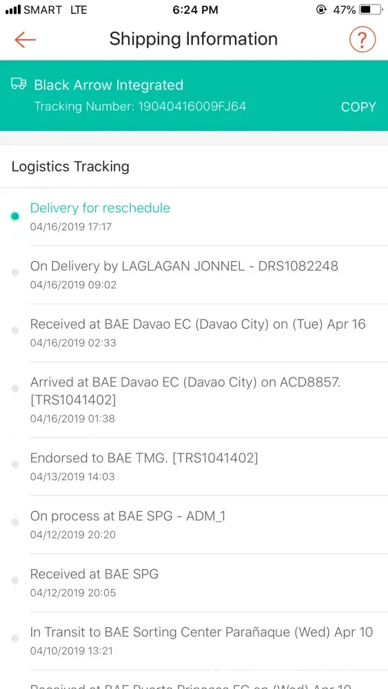 The parcel I have been expecting to arrive was in transit to BAE Dumaguete since march 11. But it seems like it has not left BAE sorting center in Parañaque. It is now March 16 and I will be needing the contents of the parcel in March 18. It would be a waste buying something that I couldnt use just because it was delivered so late. PH1993288243782