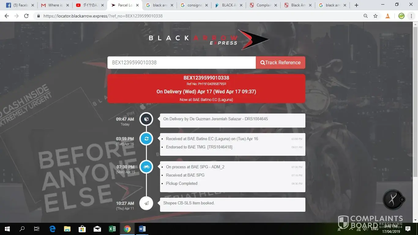 Now April 17, they texted me again but it was this morning and now it is afternoon and still now news about it. I have receive a my ninjavan package but still nothing from black arrow. Wow. Round of applause for black arrow how incompetent they are.