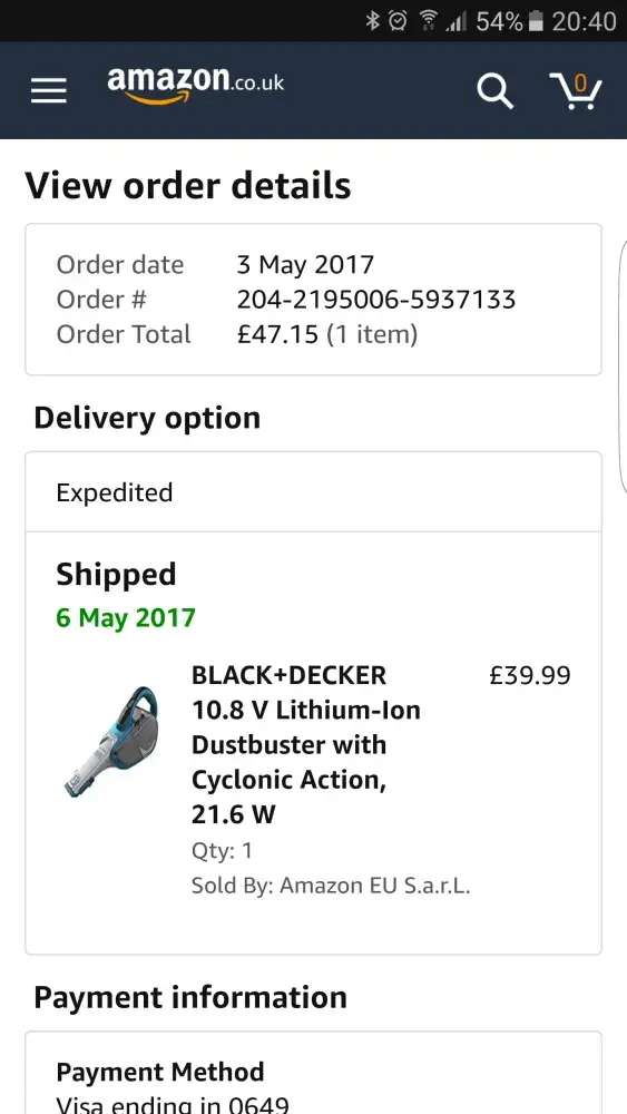 I bought the DVJ320J Dustbuster last year in May '17 from Amazon. I've mainly used it to clean my car. However, the product stopped working, not charging at all. I am very disappointed in B&D as it's a very famous brand, but this product didn't even last a year. I always buy Black & Decker due to it's reputation, so I like to get a replacement model or if not a full refund please.