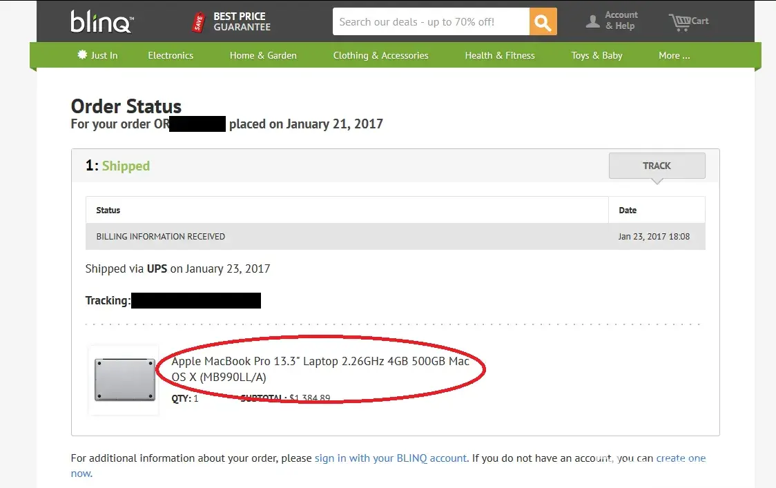I bought "apple macbook pro mf840ll/a 13.3-inch laptop with retina display (256 gb hard drive, 2.7 ghz dual-core intel core i5 processor, 8 gb 1866 mhz lpddr3 ram), silver (2015 version)" from amazon under blinq merchant. However, i noticed in the track order status from their website shows me an older version "apple macbook pro 13.3" laptop 2.26ghz 4gb 500gb mac os x (Mb990ll/a)". I haven't received the item yet, but from previous complaints, i have no doubt that i'll received the wrong item.