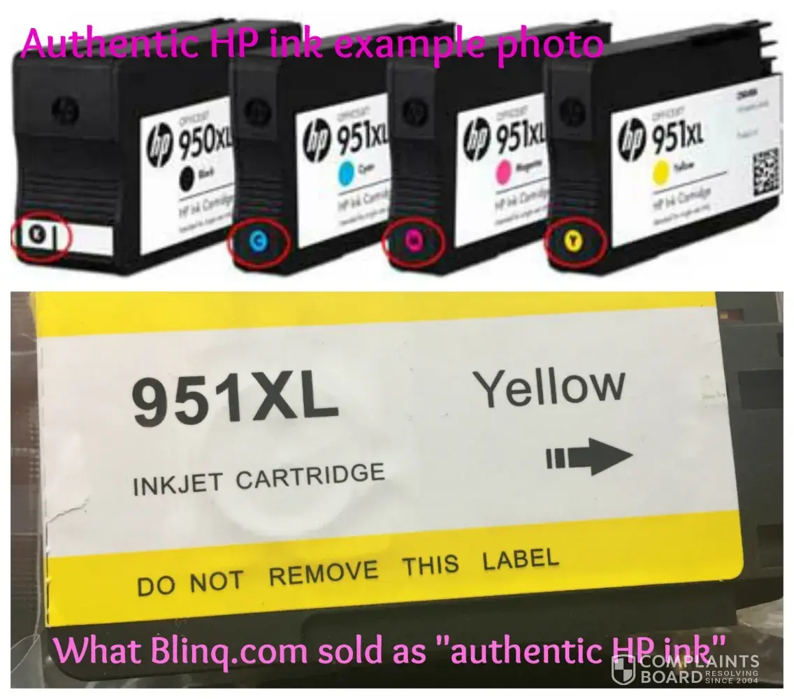 I contacted Blinq. They told me i was out of luck because it was beyond 30 days. I replied to them with photos of the ink they sold me and what authentic ink cartridges looked like. They then stopped replying entirely.